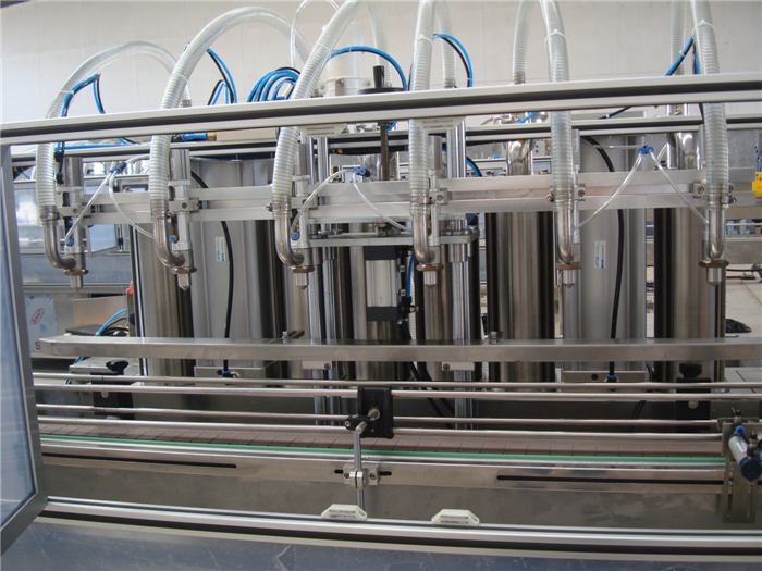 器的瓶口完全吻合,否则输出报警信号,而且在故障未排除之前,不让灌装继续进行。容易起泡的物料,设备进行边灌装边提升来减少物料起泡。 最后,灌装头在容器到位后能准确下移使灌装插入瓶口 ,灌装完毕后,灌装头应迅速上移,使容器能顺利输出。