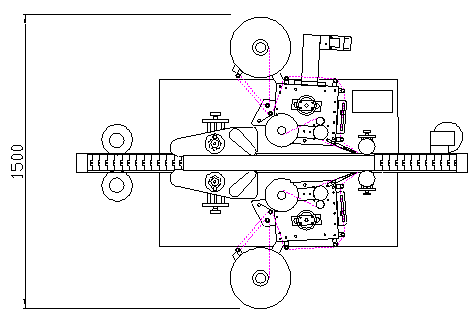 工作过程的开始是瓶子在传送带上以一个不变的速度向贴标机进给。机械上的固定装置将瓶子之间分开一个固定的距离,并推动瓶子沿传送带的方向前进贴标机的机械系统包括一个驱动轮,