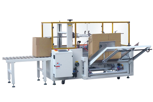 人工将纸箱放置在机器储存板上,机器自动将纸箱拉开(吸盘式)成型,自动折底部折页并自动封箱。